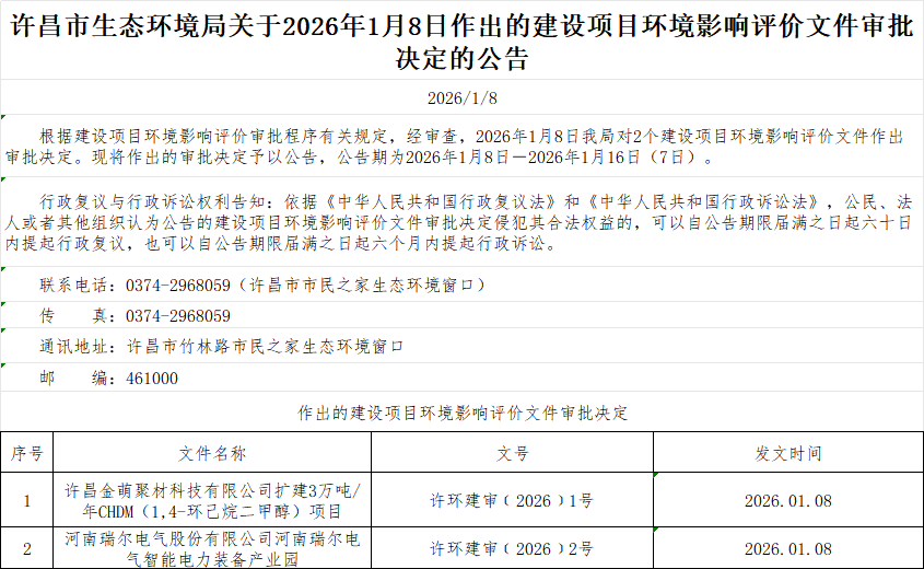 许环建审〔2026〕2号河南瑞尔电气股份有限公司河南瑞尔电气智能电力装备产业园环境影响报告表的批复(告知承诺).pdf