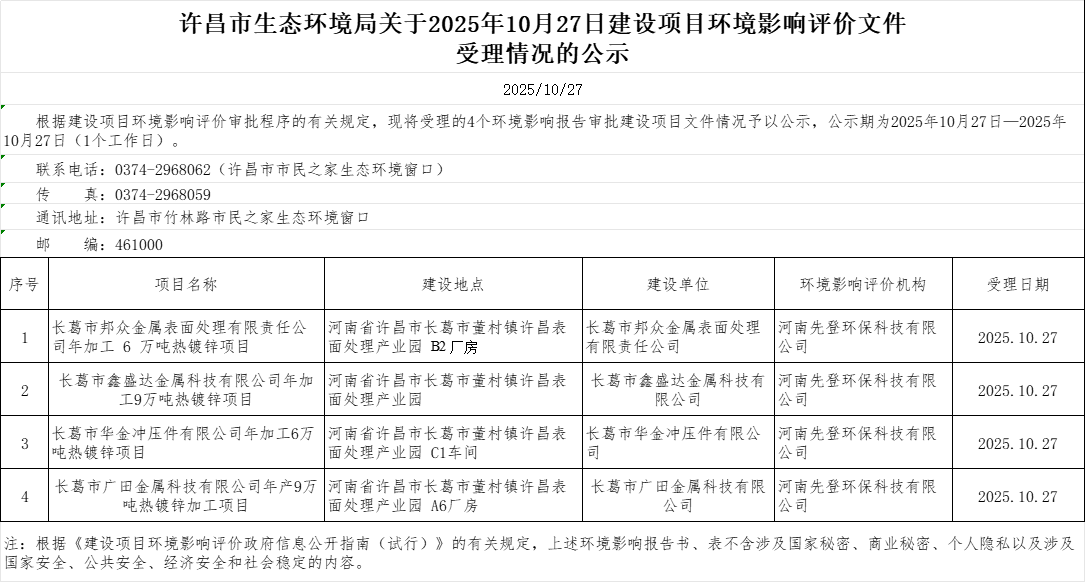 长葛市华金冲压件有限公司年加工6万吨热镀锌项目全本公示.pdf
