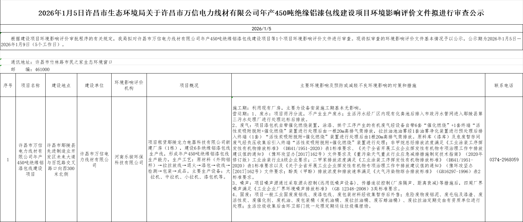 2026年1月5日环评文件审查公示