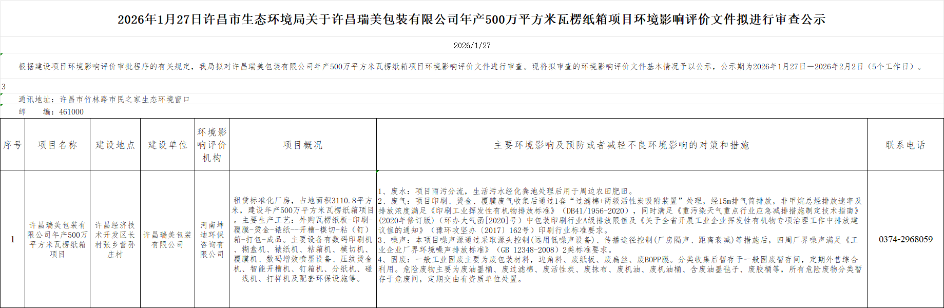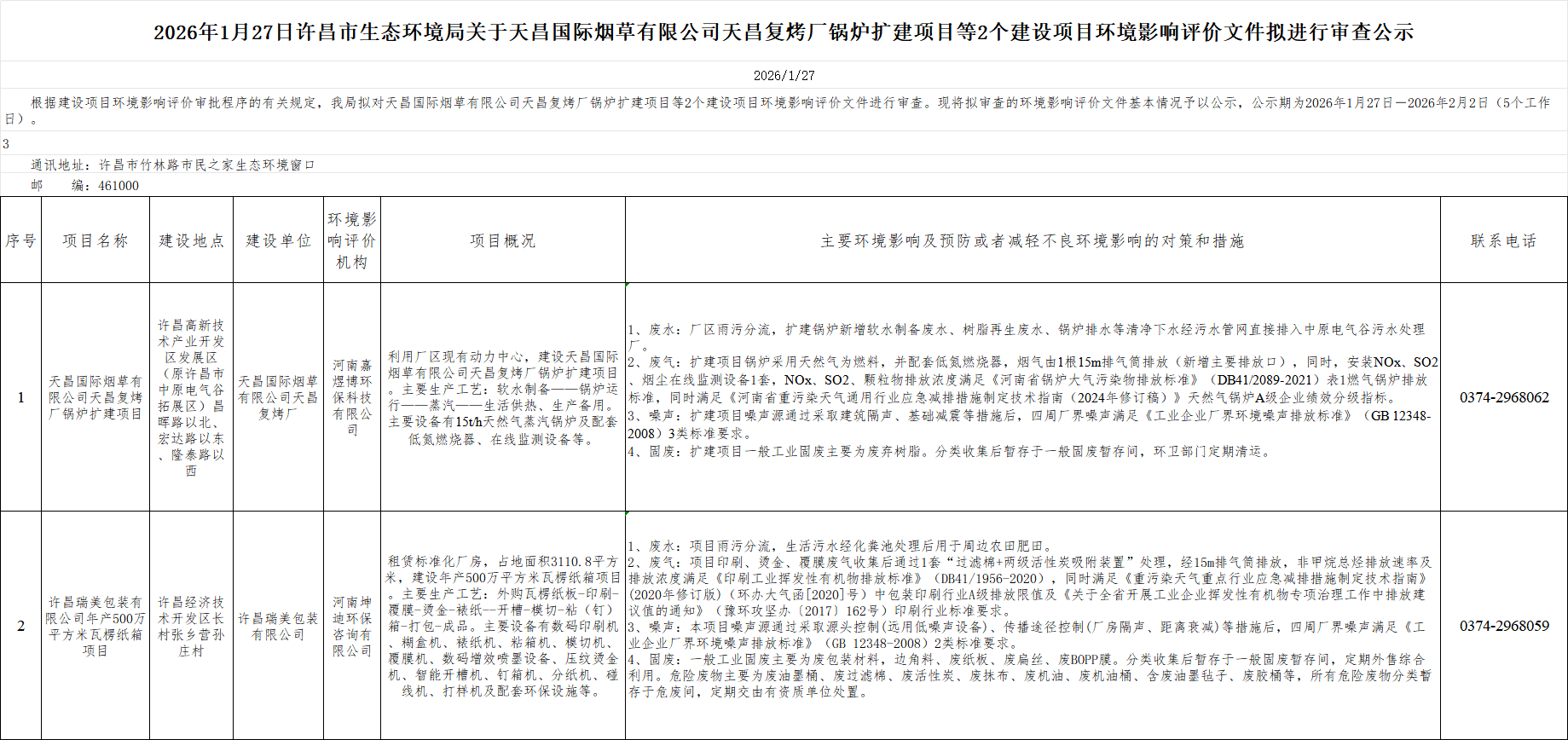 2026年1月27日环评文件审查公示