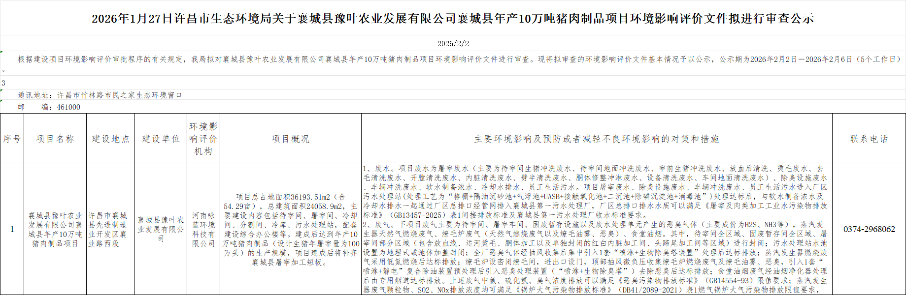 2026年2月2日环评文件审查公示