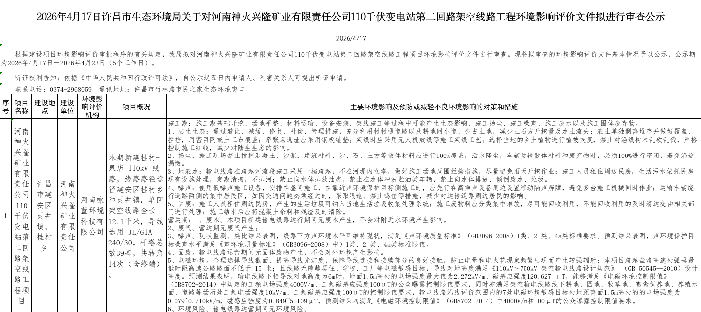 2026年4月17日辐射类环评文件审查公示